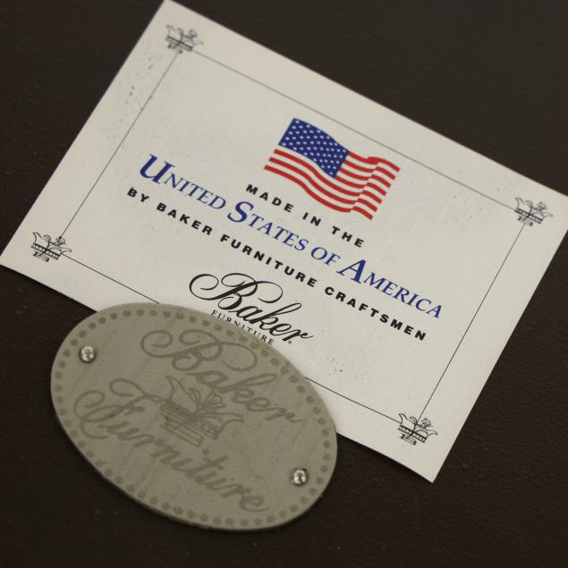 Overall good estate condition; the top with some minor indents from light use; some minor finish flaking to interior leather surface.