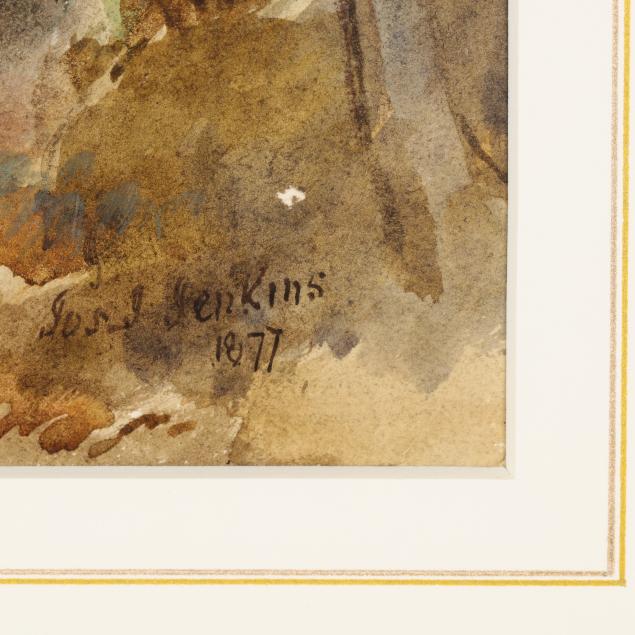 Watercolor and gouache on paper, 1877, signed at lower right, inscribed to the verso, matted and framed below glass.