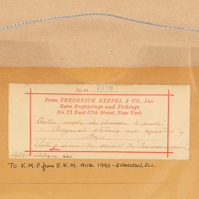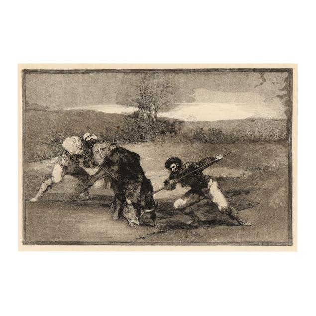Etching and aquatint, plate 2 from La Tauromaquia, not signed, matted and framed below glass.