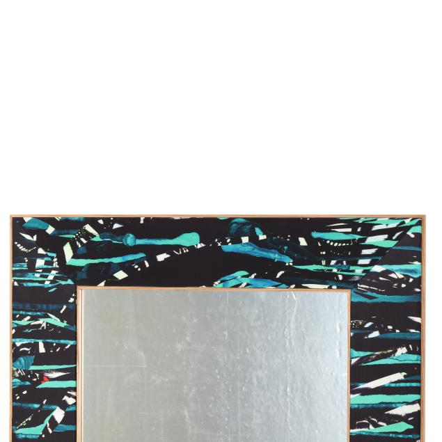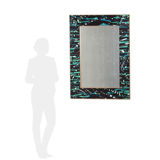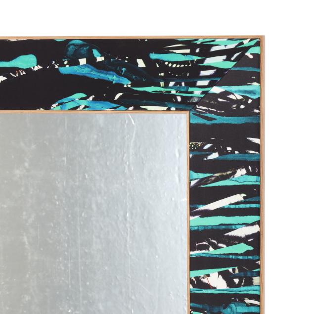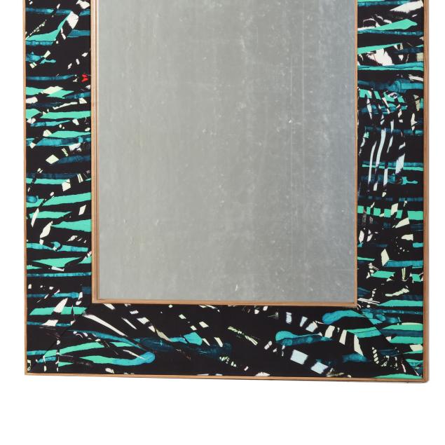 Contemporary, Green Zebra upholstery in honey ash frame, with verso mounting for horizontal or vertical positioning, unmarked.