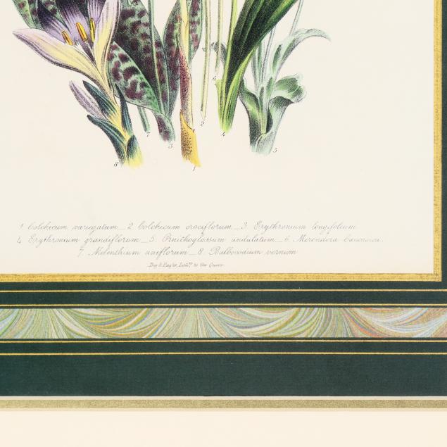 Each an offset lithograph in colors, after antique originals, matted and framed below glass.