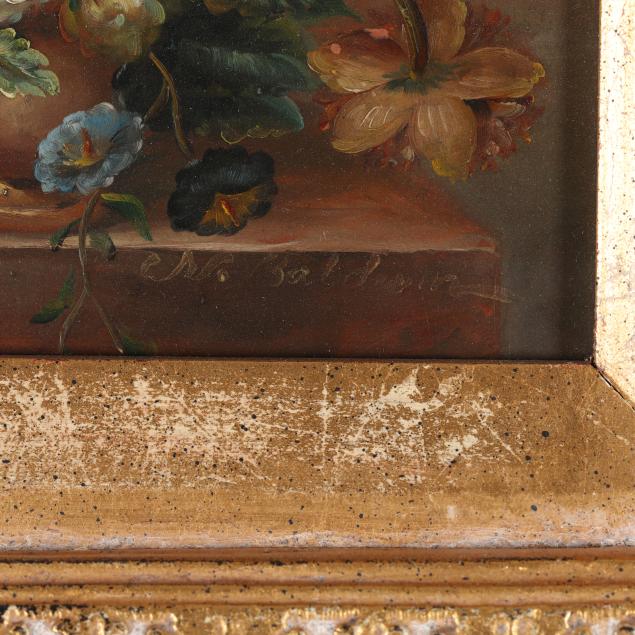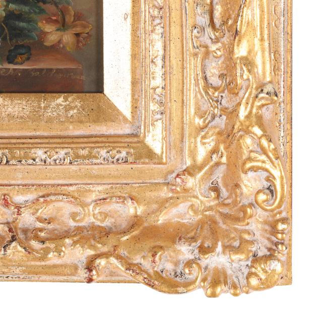 Oil on board, signed at lower right, presented in an ornate giltwood frame.