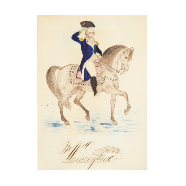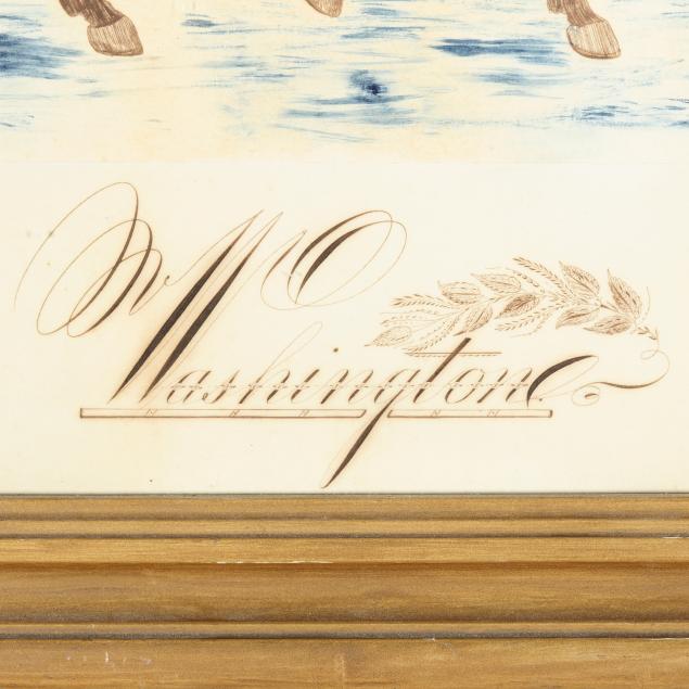 Mid-late 19th century, pen and ink on paper, with "Washington" in calligraphic script to lower register, framed below glass.