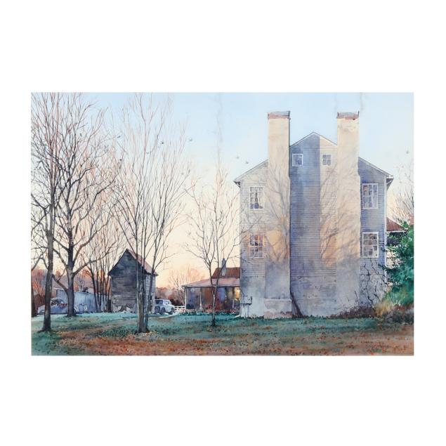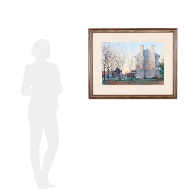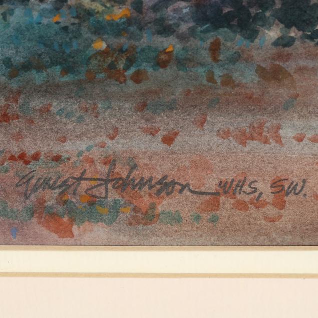 Watercolor on paper, signed at lower right, matted and framed below glass.