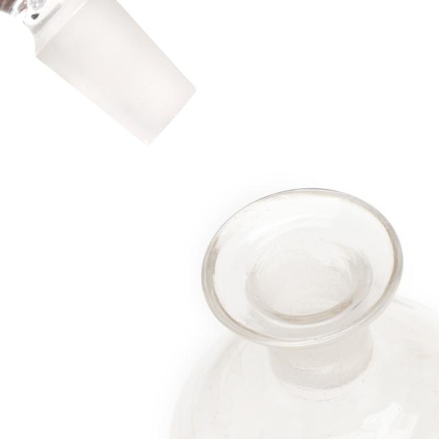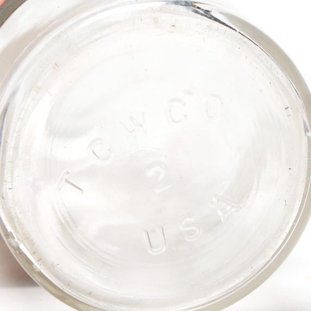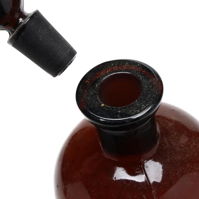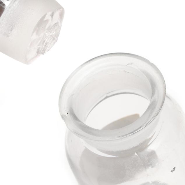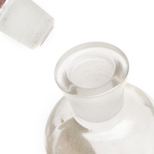 From the Estate of the late Patricia W. Capps, Winston Salem, North Carolina Some interior calcium deposits; the clear glass bottle's labels all appear later.