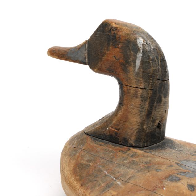 Original paint worn to bare wood in most places; tight and stable hairline in the neck.