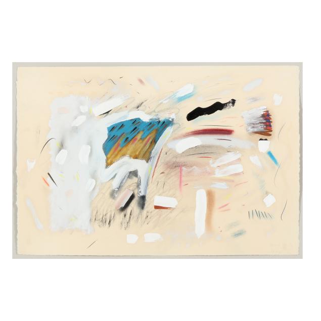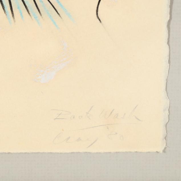 Mixed media on paper, 1980, signed "Cray" and dated at lower right, mounted and framed below glass.