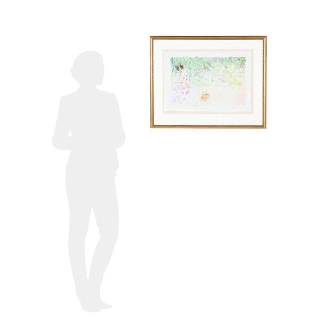 Watercolor on paper, 1987, signed and dated at lower center, matted and framed below glass.