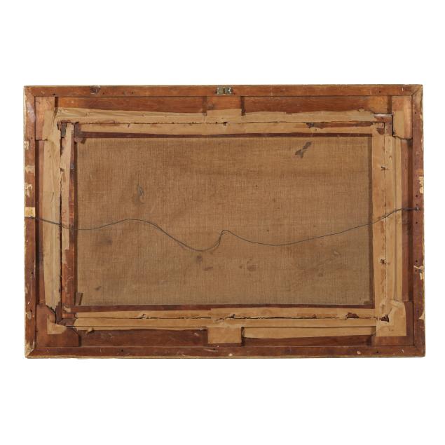 A few patches to verso with associated retouching, stretcher lines, and age cracking, some minor losses to the frame.