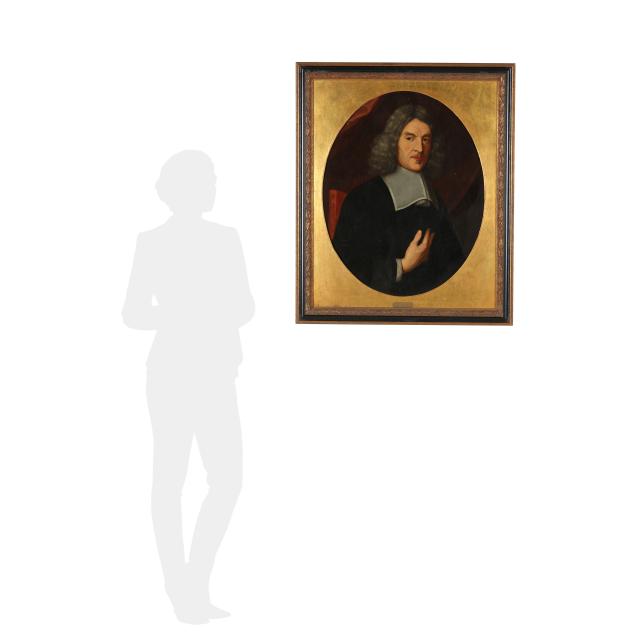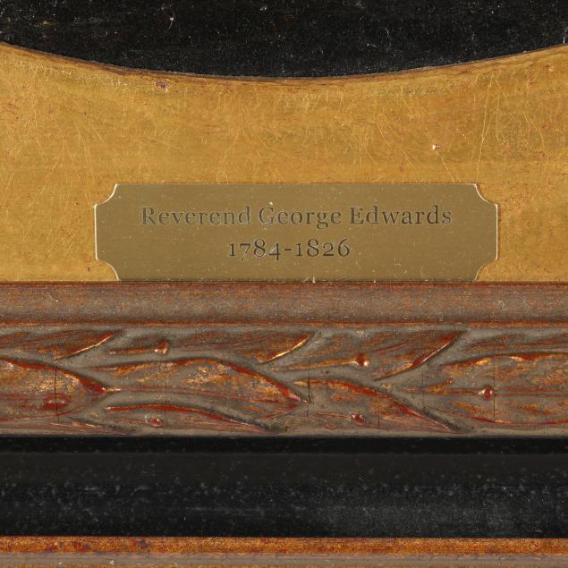 Oil on canvas (lined), not signed, the nameplate at lower center attributing the sitter as Reverend George Edwards (1784-1826), presented in a parcel gilt frame.