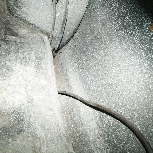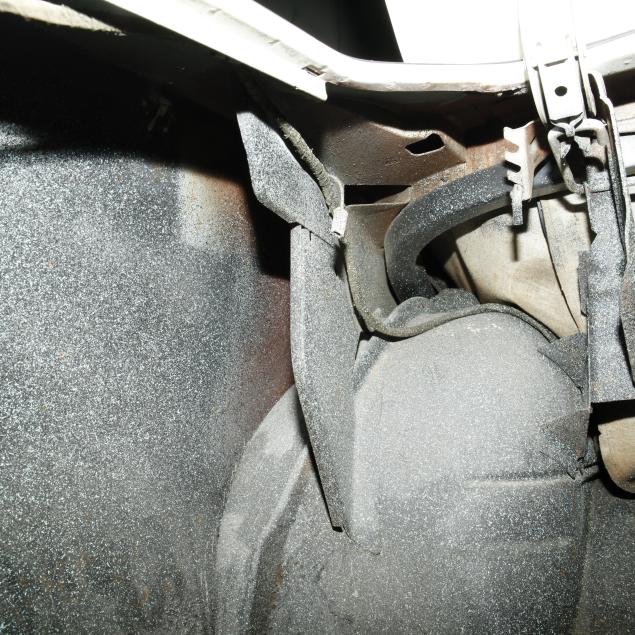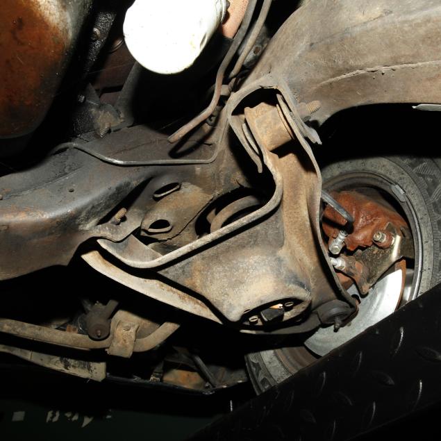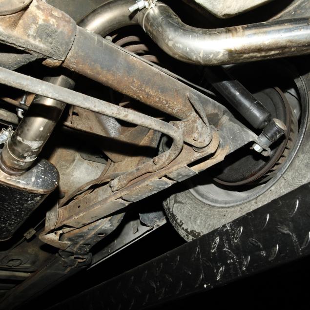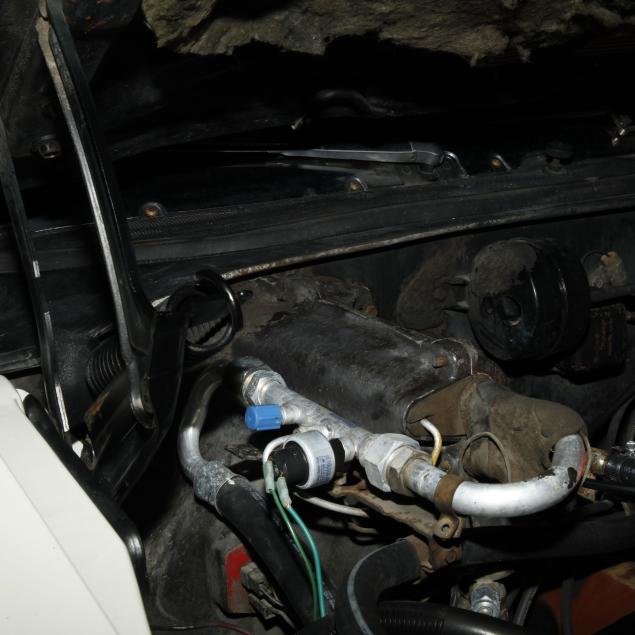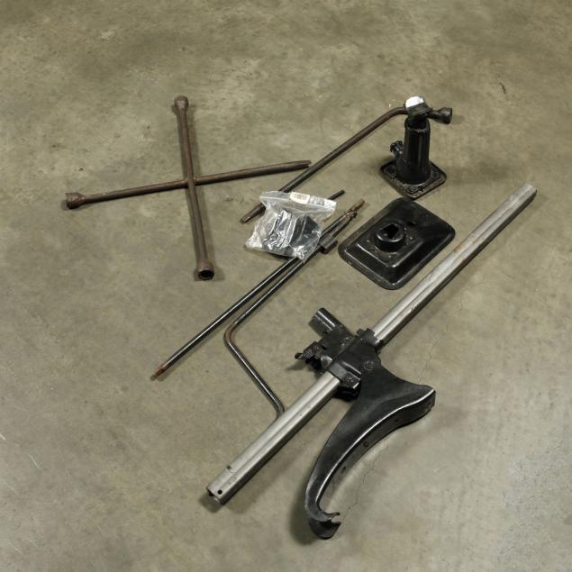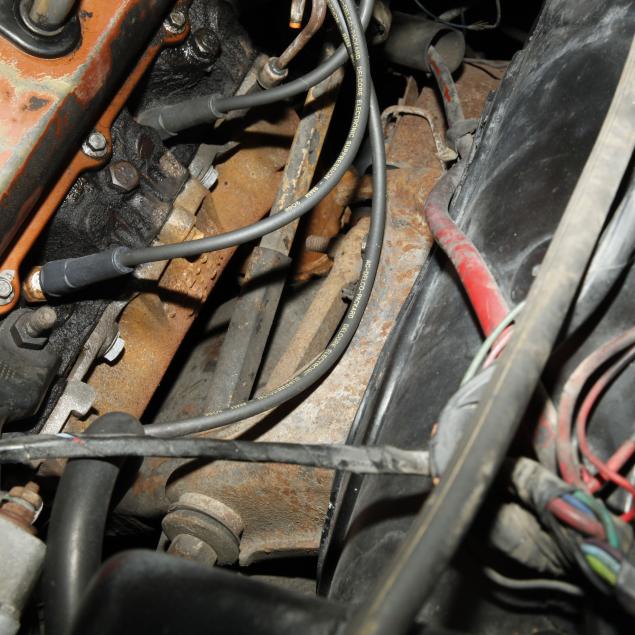Heater core is bypassed; the original steering wheel with some cracking; some surface rust present to convertible top frame; front lower fenders with very minor repairs; passenger external lock is out, but present; rear seat foam is original and brittle; tires and shocks are aged; no other apparent concerns.