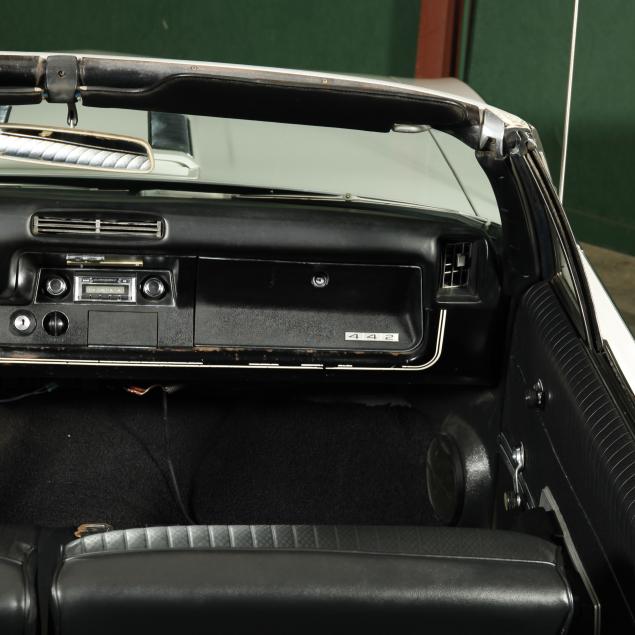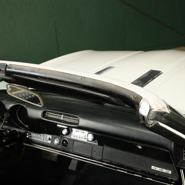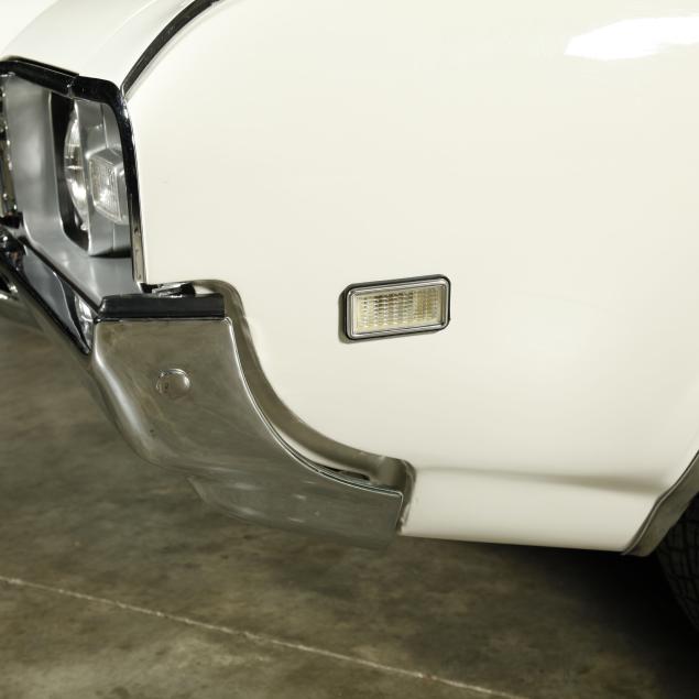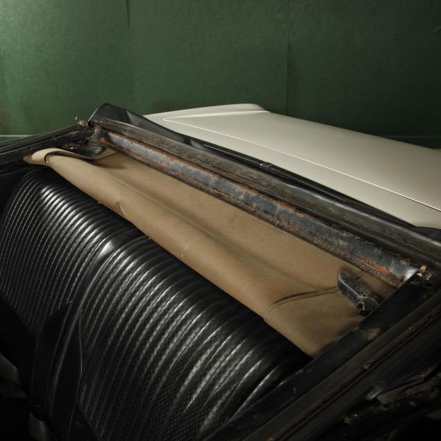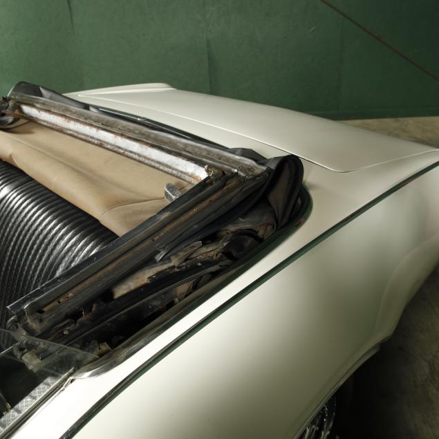 A refresh was performed in 2011 to include stripping to bare metal, and replacing both rear quarters due to minor rust in arches. The trunk was refinished in original speckle paint. It was completely repainted in the original color, the bumpers were re-chromed, the grill and other trim parts were replaced with Year One and Original Parts Group replacements. The window gaskets, and trim were also replaced. The original LoF glass remains with a replacement PPG front windshield. The front seats and doors were rebuilt and parts replaced. Material for the rear interior is present. The heater core was found leaking, and was bypassed. In 2016, the coolant system was serviced with new water pump, thermostat, radiator, and a new timing chain set was installed. Most recently, the hydraulics for the top were repaired. A folder is present with all receipts dating from 1969 to present. Confirming fastidious care.