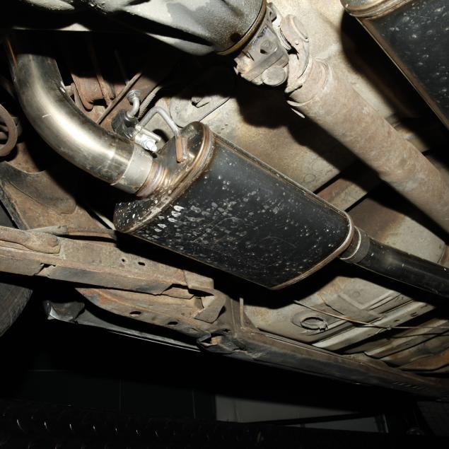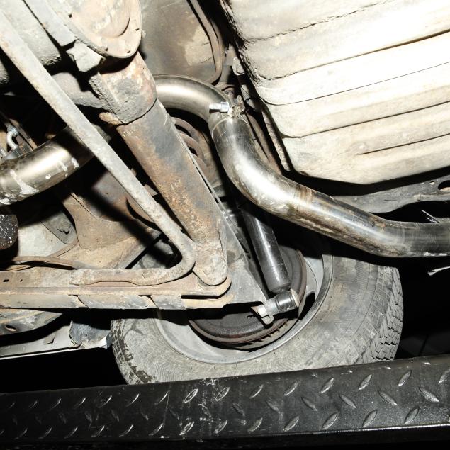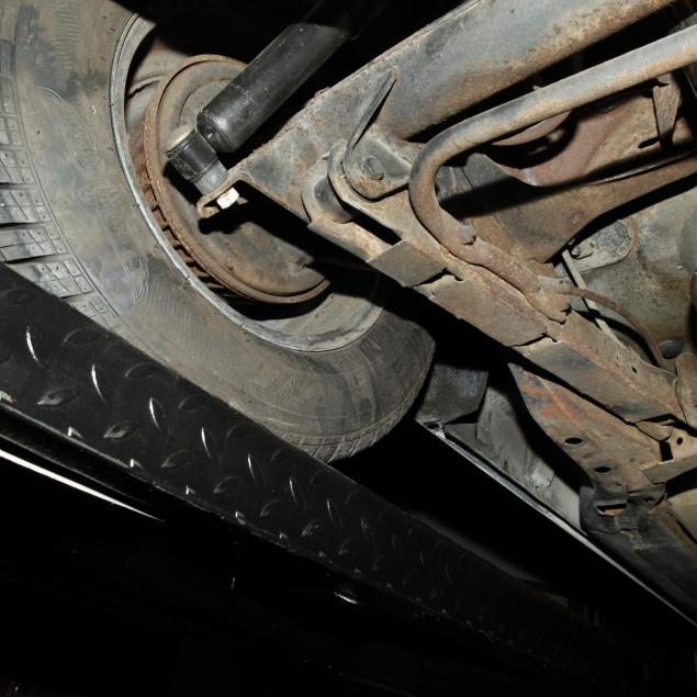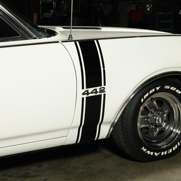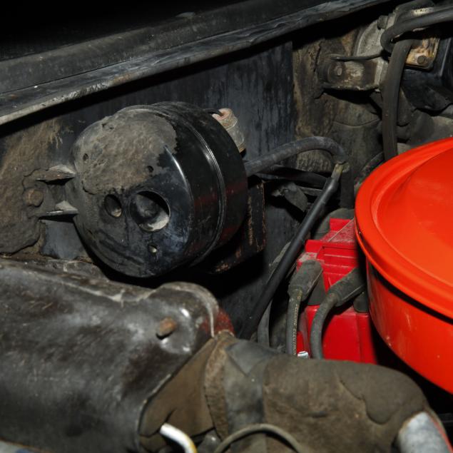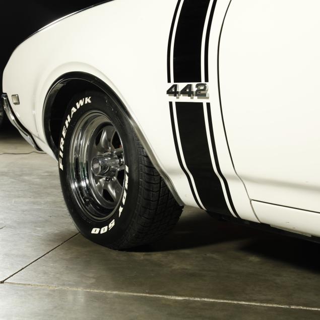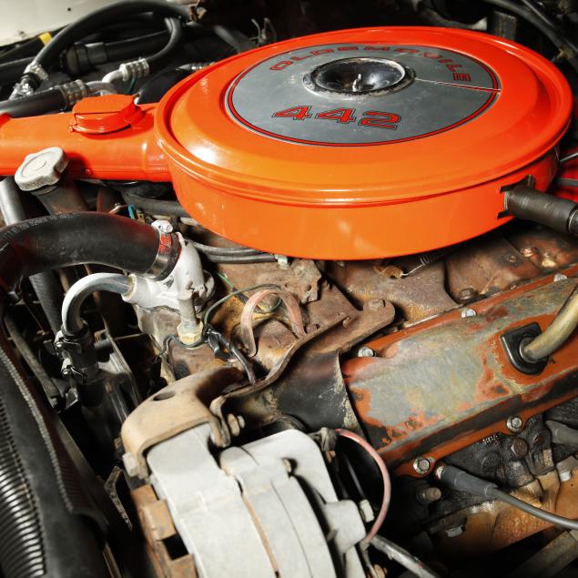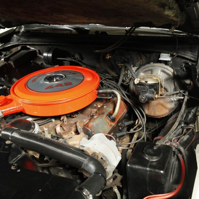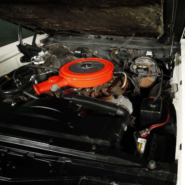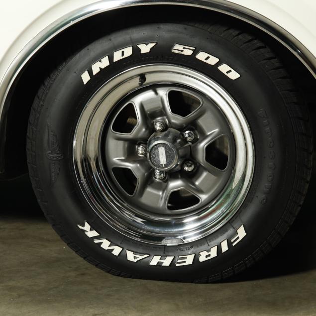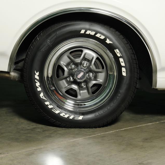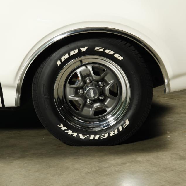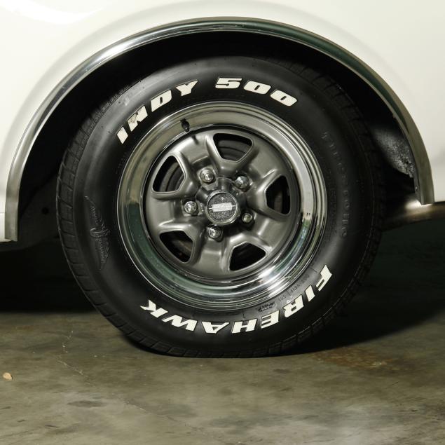 With a 400 cubic inch V8 engine, and a three-speed automatic transmission. Equipped with factory air conditioning, power steering, power brakes, and the front brakes are upgraded to discs. The original drum brakes remain in the rear. The wheels are reproduction one-piece 15" Rally style wheels, with Firehawk P215/65R15 tires dated 2010. The originals were 14" and had a chrome trim ring.