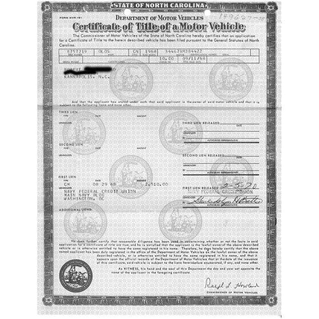 One-owner car from new, with the original invoice, and North Carolina title. Purchased upon return from serving in Vietnam. The owner claims the engine has never been opened up, and it sounds like a new engine.