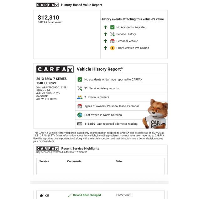 VIN: WBAYF8C59DD141491 Mileage: 117k