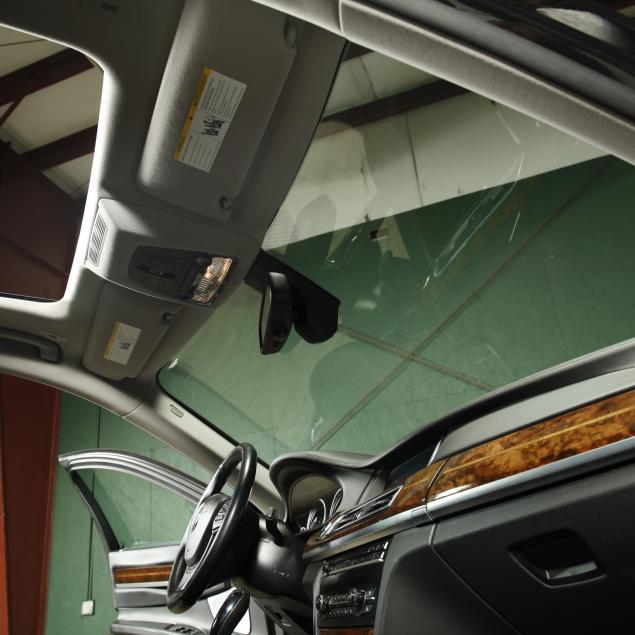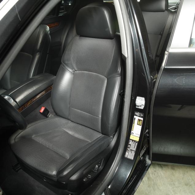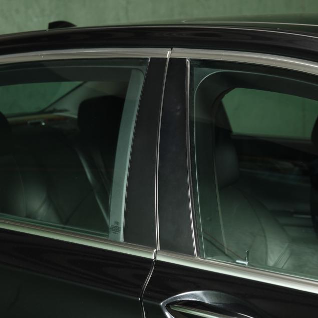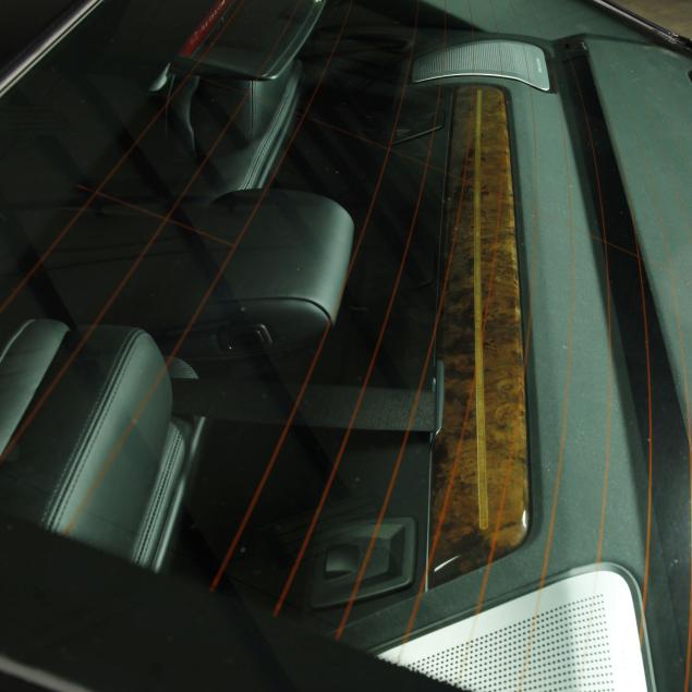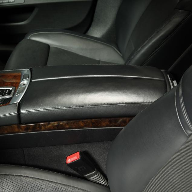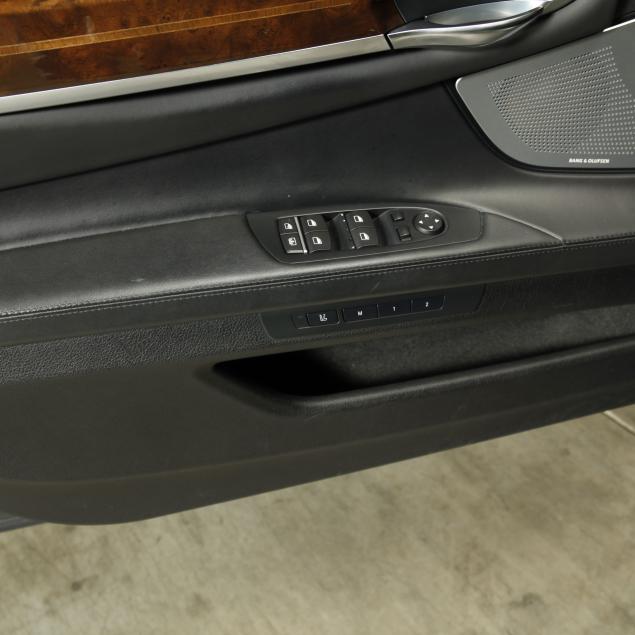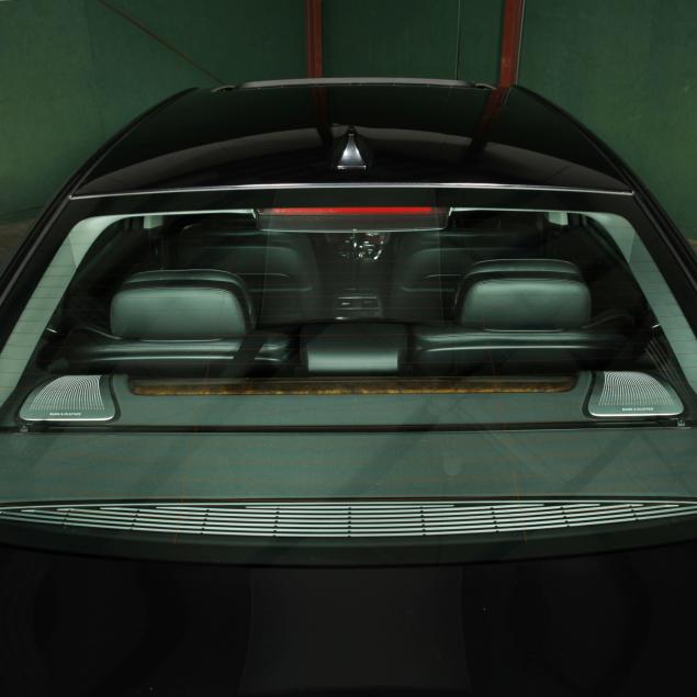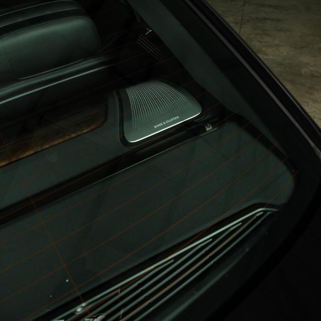 Exterior paint is black metallic, with a black leather interior and fine burl wood trim with accents. The front seats are heated and cooled with full electronic control. A central infotainment system features a Bang and Olufson sound system. The extended wheelbase for enhanced rear seat features, such as reclining/massaging/heated and cooled rear seats, additional leg room, and rear climate control with full privacy screens.