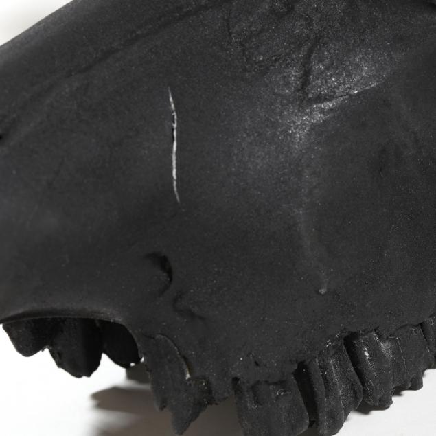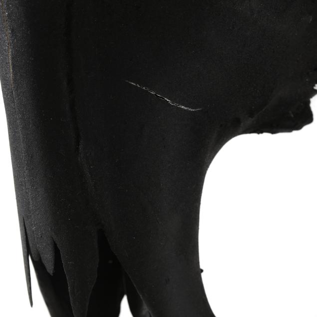 Some cracks where horns meet skull; a few surface marks and abrasions.