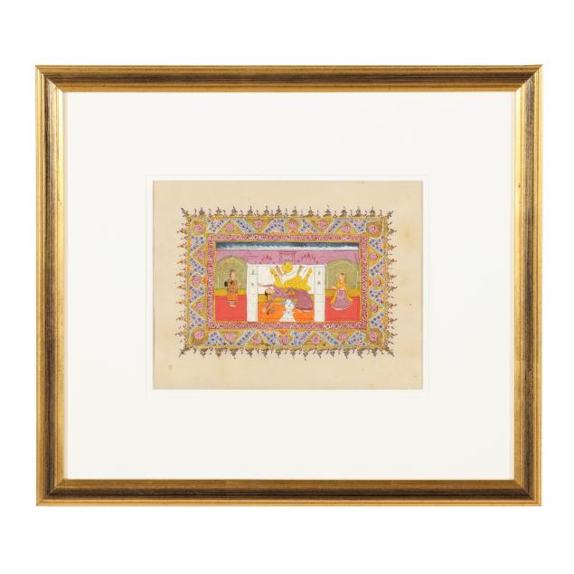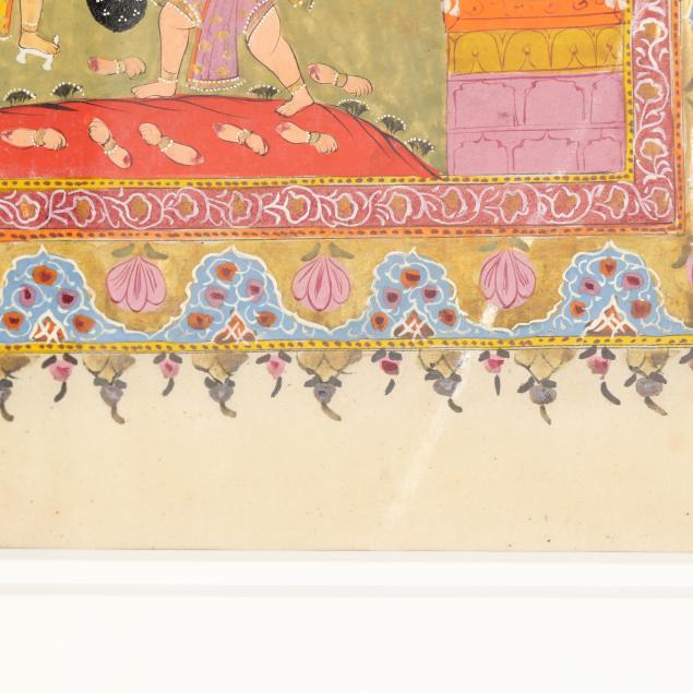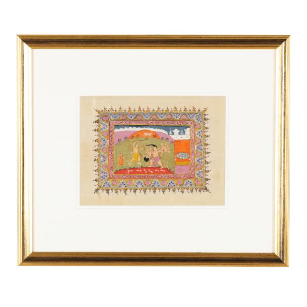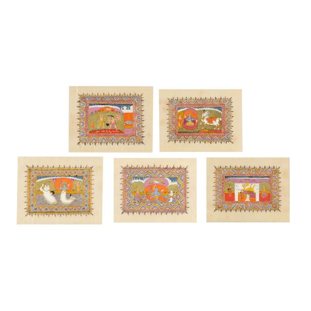18th century, Pahari school, pigments and gold leaf on paper, includes five paintings depicting scenes from the