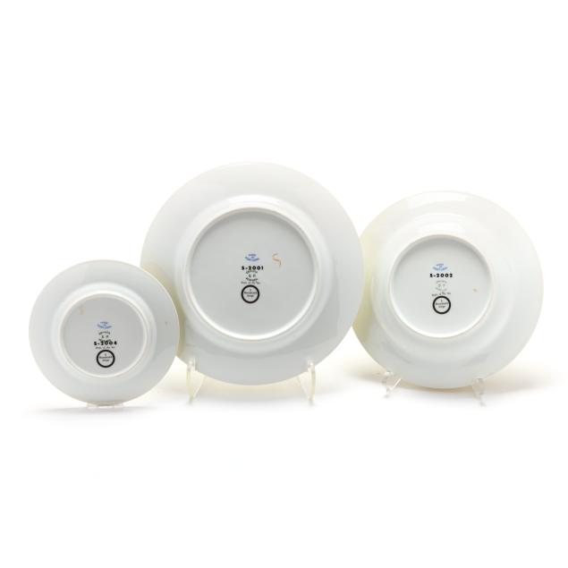 One bread and butter plate with nick to foot rim; otherwise good estate condition.