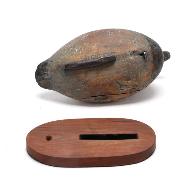 Havre de Grace, Maryland, circa 1880, carved and painted wood, with "RECKLESS" brand to the underside, and iron blade weight, mounted on a later wooden stand.