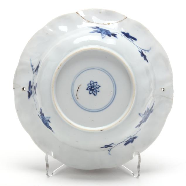 One with nick to rim and hairline to underside; one with small nick to underside rim; one with a few scattered fleabites to rim; and one with break and repair to rim, hairlines to rim, and two holes drilled to rim for display.