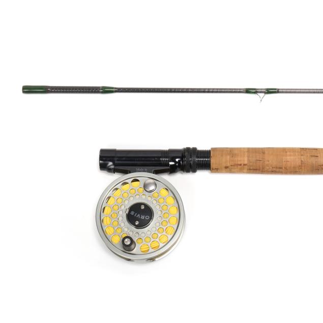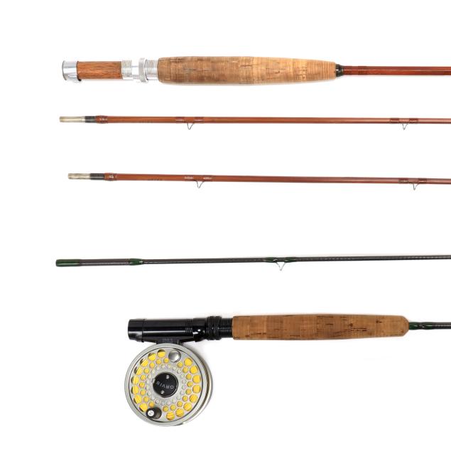 Private Collection, Fearrington, North Carolina One being an early rolled graphite blank 7'9", 5 wt rod with a Battenkill BBS III reel, the other being an Orvis Impregnated Battenkill Bamboo fly rod, sn 30104, butt 51 in.