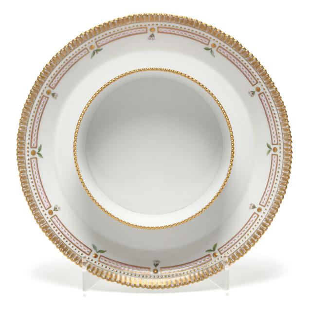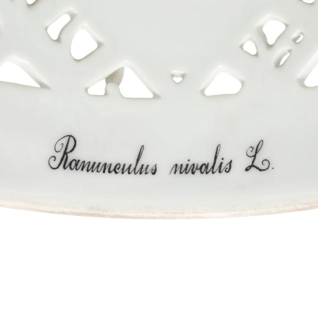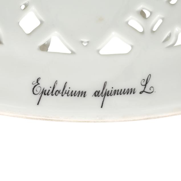 Epilobium alpinum L. (10 3/4 x 8 1/2 x 8 1/2 in.), set upon a flared round stand with central conforming reservoir (3 1/4 x 12 x 12 in.).