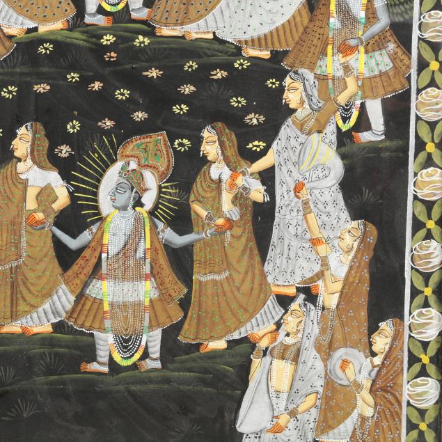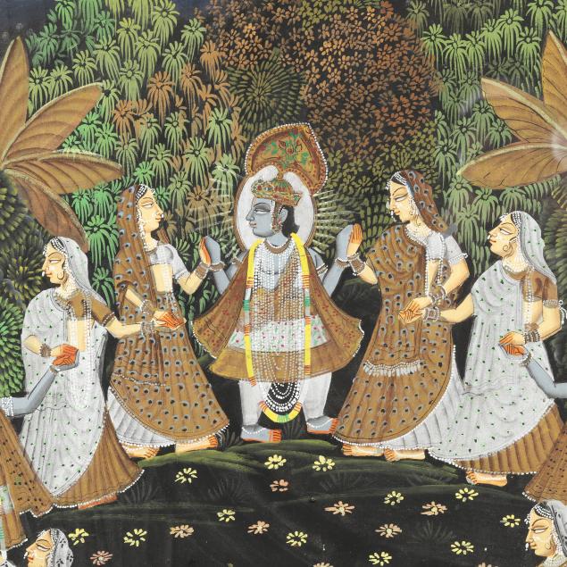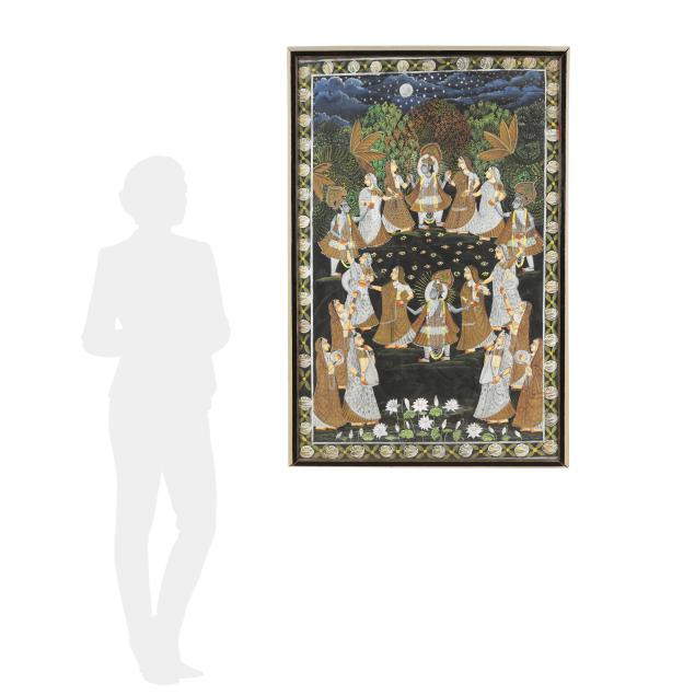 An Indian Pichwai Painting of Krishna in the Rasa Lila