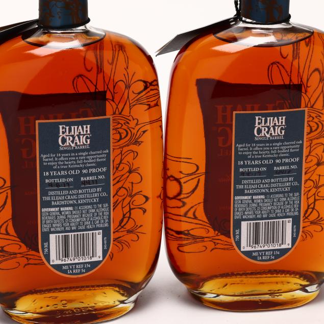 NV, Elijah Craig Single Barrel Kentucky Straight Bourbon Whiskey, Aged 18 Years, Bardstown, KY, 45%, bottled 9/8/17, barrel no. 4418 & 4411, 2hs, 2 sealed, includes 2 original hanging tags (2 750 ml)