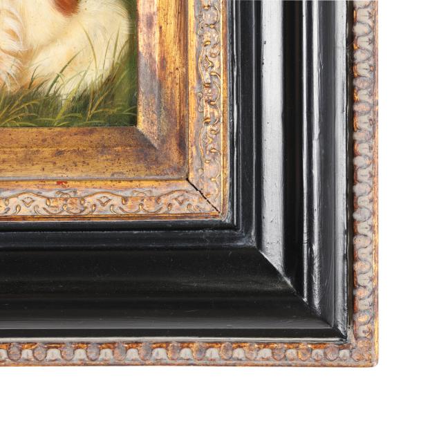 Oil on board, unsigned, presented in an ebonized wood frame.