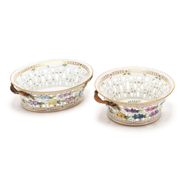 Royal Copenhagen, Two Flora Danica Porcelain Reticulated Fruit Baskets
