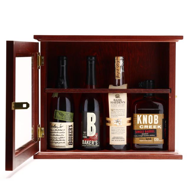 Includes original wooden display case with 'The Small Batch Bourbon Collection' metal placard.