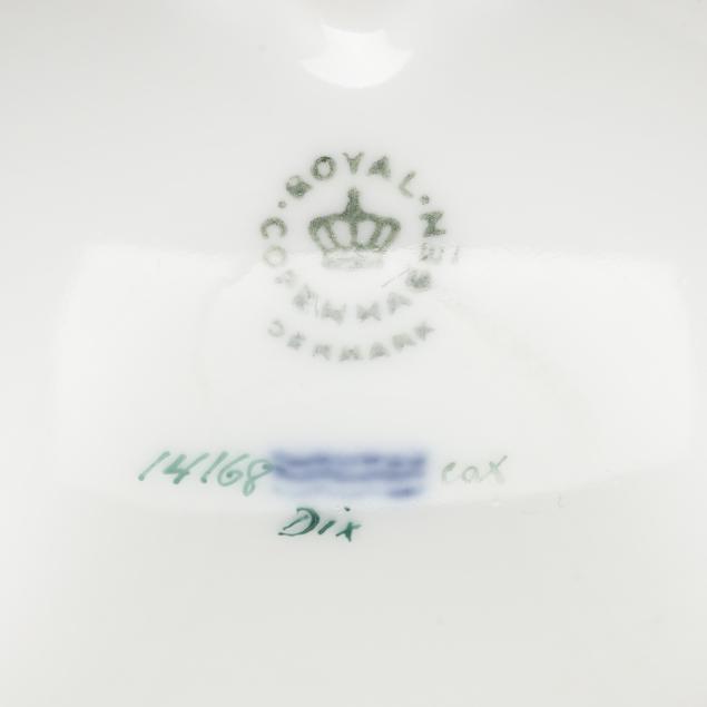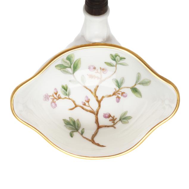 Together with the conforming underplate, shape number 3560, pattern no. 20, 1974-1978 date mark, decorated in Hieracium umbellatum B filifolium Fr. (1 3/4 x 15 3/4 x 12 1/4 in.); and wooden handled ladle, shape no. 14168, with 1974-1978 date mark (15 x 4 1/2 x 3 1/4 in.).