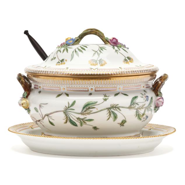 Royal Copenhagen, Flora Danica Porcelain Large Lidded Tureen with Ladle and Underplate
