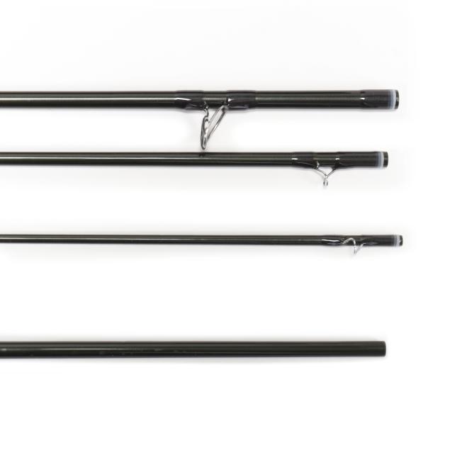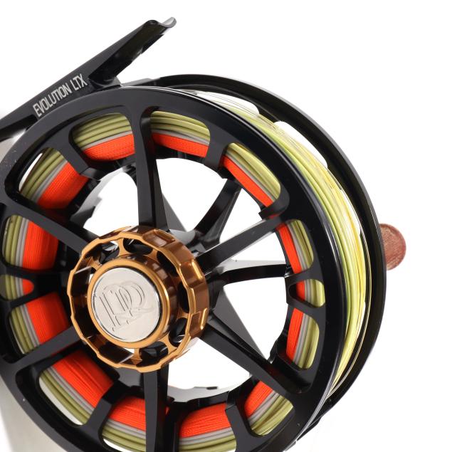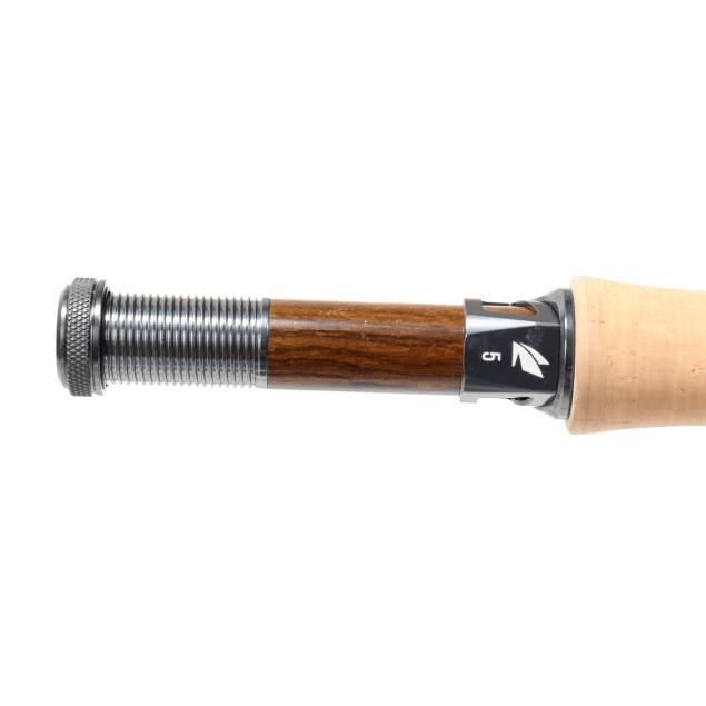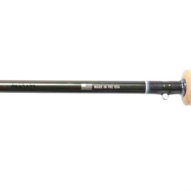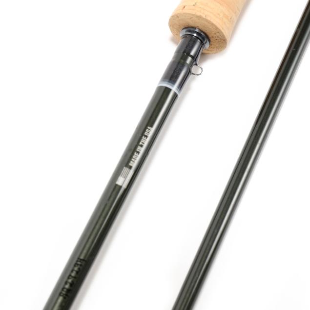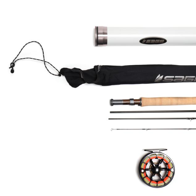 Four piece graphite Sage blank, cork grip, hardwood reel seat spacer, in factory sock, and tube, with a Ross Evolution reel and new fly line.