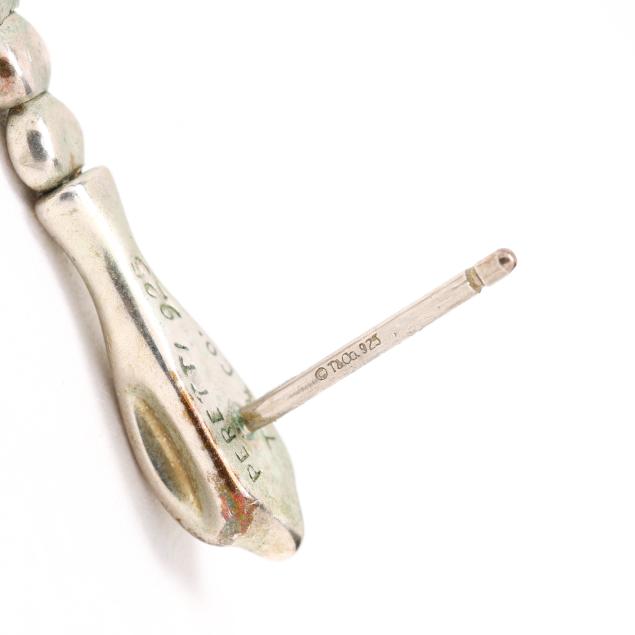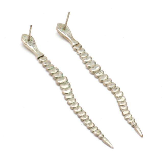 The silver drop earrings in the form of an articulated snake, completed with a post and friction back, signed and stamped 925.