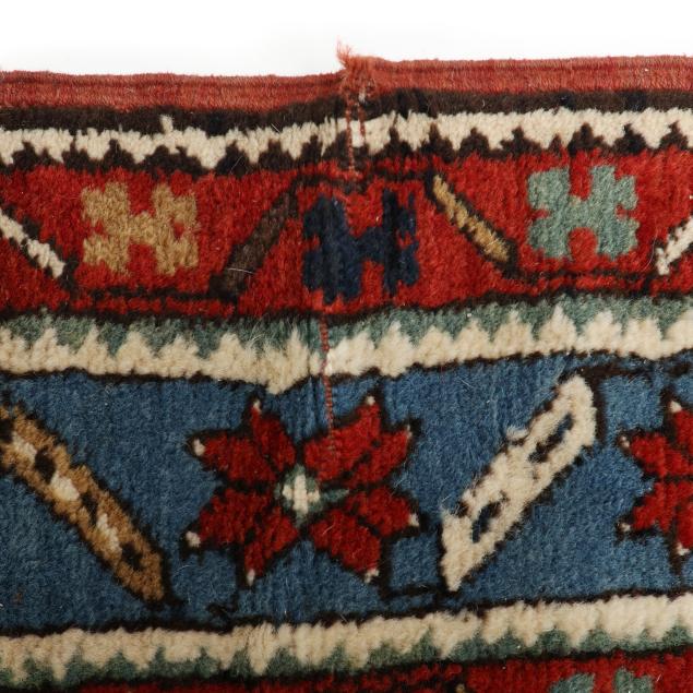 From the Collection of Jon and Mary Leadbetter, Chapel Hill, North Carolina Floppy; wear and loss to fringes, with repair; crease with loss to pile.