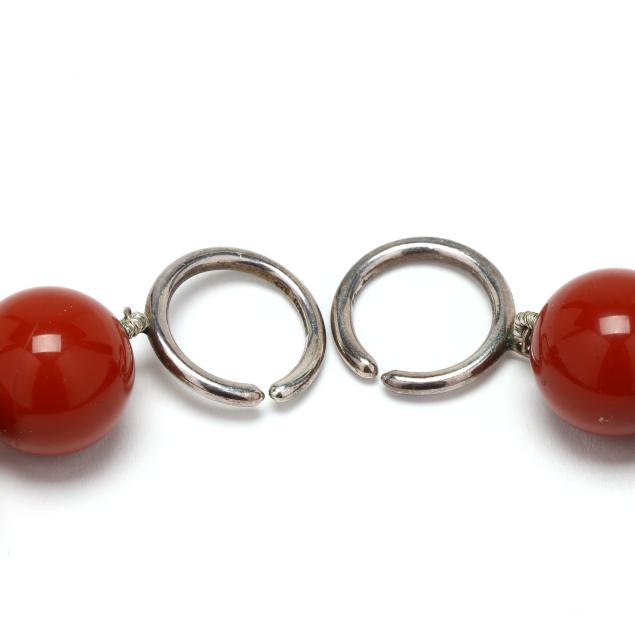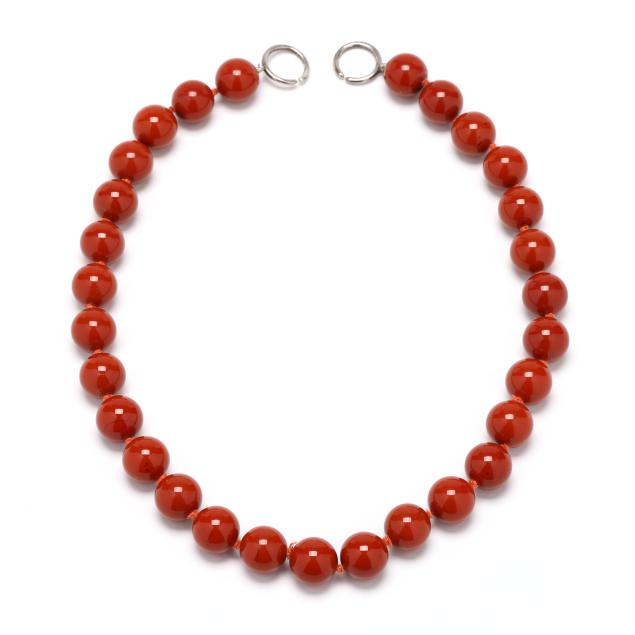 Strung knotted with (29) jasper beads (14mm), completed with silver ring clasp, signed and stamped 925.