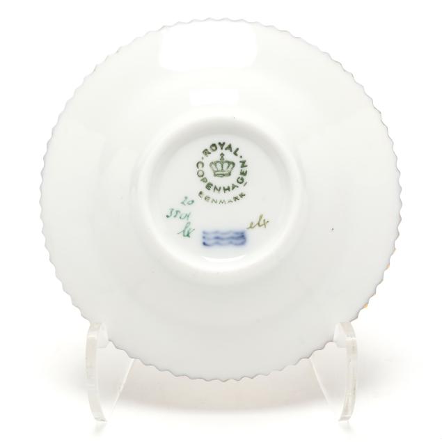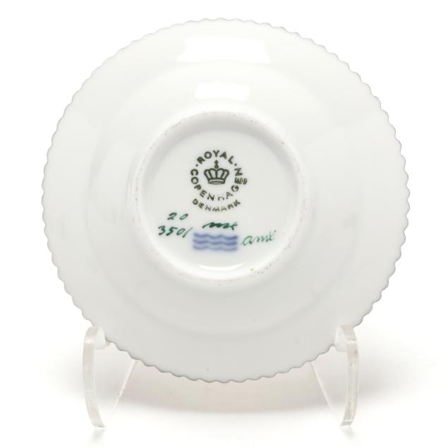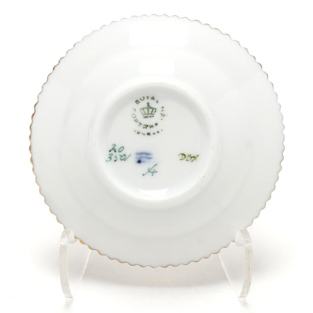 Denmark, 1969-1978 date marks, hand-painted and gilt porcelain, pattern no. 20, pattern 3501, marked with green printed and blue wave factory marks to the underside.