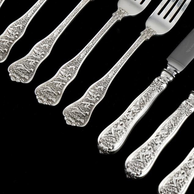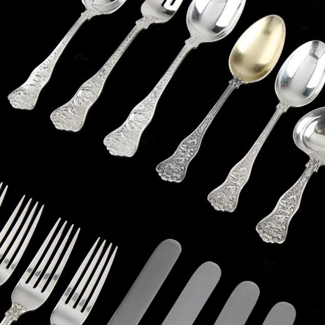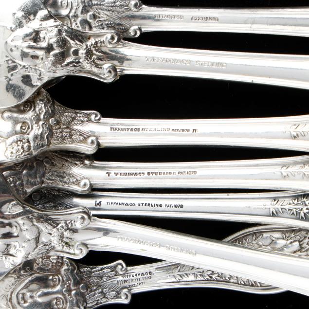 Date marks from various periods, (16) pieces to include: (6) forks (6 1/4 in.); a salad fork (6 3/4 in.); (2) teaspoons (6 in.); an oval bowl soup spoon; a bon bon spoon; a sugar spoon; and (4) butter spreaders; most with various monograms, one with engraved gold wash bowl.