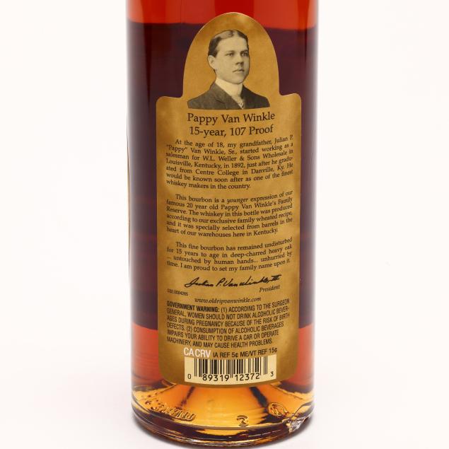 NV, Pappy Van Winkle's Family Reserve Kentucky Straight Bourbon Whiskey, 15 Years Old, Old Rip Van Winkle Distillery, Frankfort, KY, 53.5%, 2025 bottling, into neck, sealed (1 750 ml)