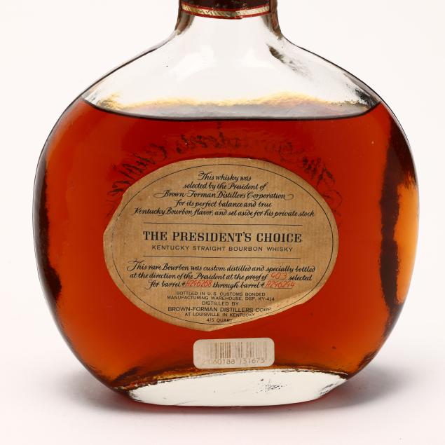 NV, The President's Choice Kentucky Straight Bourbon Whisky, Brown-Forman Distillers Corp., Louisville, KY, 45.2%, 1968/1969 bottling, barrel #A296268 through barrel #A296294, ms, sealed, ocb (1 4/5 Quart)