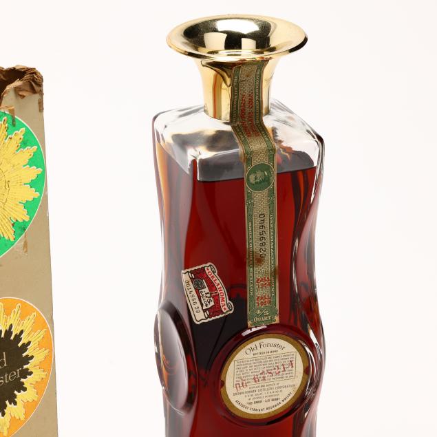 NV, Old Forester Kentucky Straight Bourbon Whiskey, Bottled in Bond, 5 Years Old, Brown-Forman Distillers Corporation, Louisville, Kentucky, 50%, made fall 1954, bottled fall 1959, 1cm below shoulder level fill, sealed glass decanter, partial ocb (1 4/5 Quart)