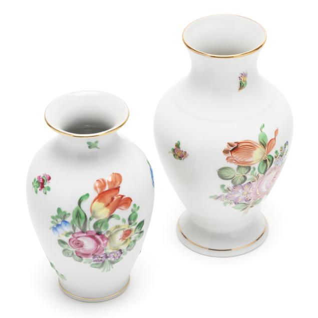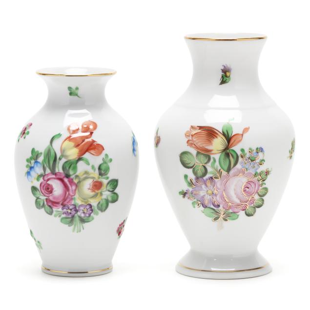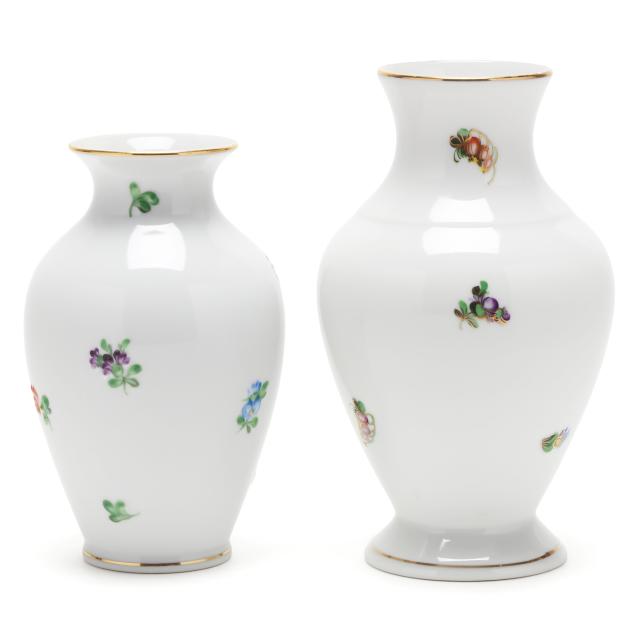 Printemps pieces: a #7173 vase (5 3/4 x 3 1/2 in. diameter), and a #7027 vase with 125th anniversary mark (6 3/4 x 4 in. diameter), all marked to underside.