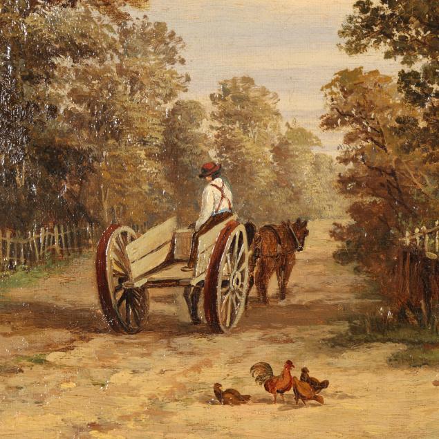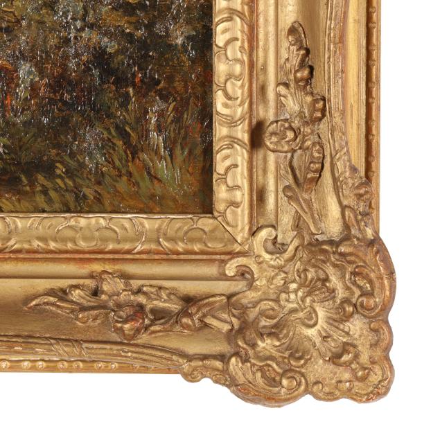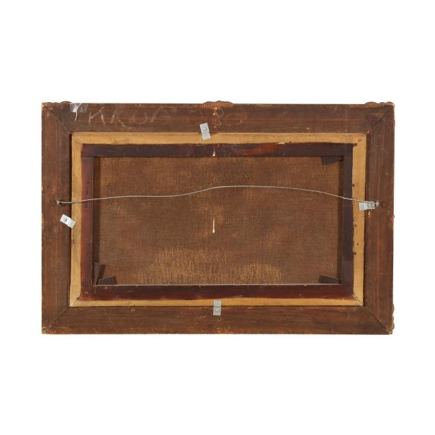 Oil on canvas (lined), signed at lower left, presented in a giltwood frame.