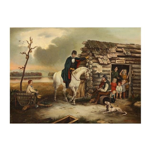 The original painting is recorded in the Catalog of American Portraits, with ownership attributed to the Arkansas History Commission, and is documented in the National Portrait Gallery (Smithsonian Institution) archives. Shortly after its completion, the image was widely disseminated through lithographic reproductions, including an 1859 Boston publication by J. H. Bufford with lithography by Leopold Grozelier, and later through popular Currier & Ives prints in the 1870s. The widespread circulation of the composition led other artists to create their own versions of the scene, as exemplified by the present work.