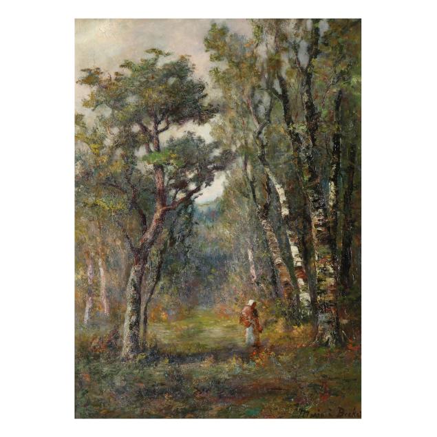 Deeply devoted to painting from nature, a’Becket worked en plein air in France, New Hampshire’s White Mountains, Virginia’s Shenandoah Valley, and later in St. Augustine, Florida, within Henry Flagler’s developing art colony. Her favored subjects were woods and rugged trees marked by age and struggle, themes she described in an 1884 letter now preserved in the Smithsonian Archives of American Art.