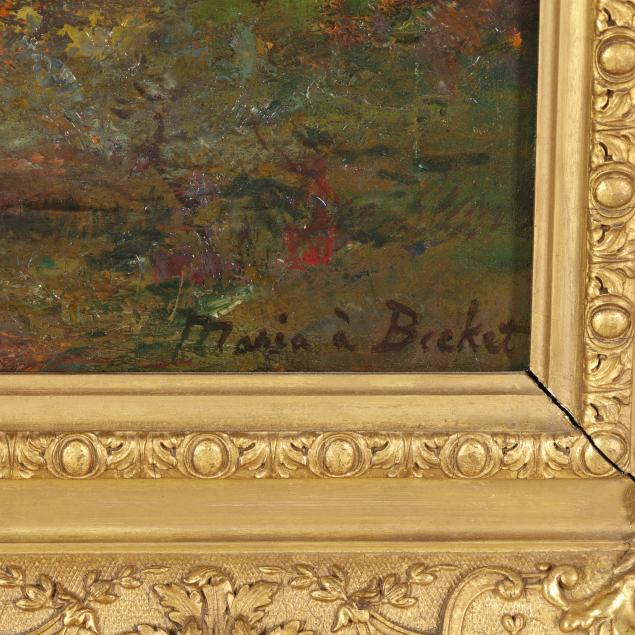 Maria J. C. a’Becket, born Maria Graves Beckett in Portland, Maine, was a professional American landscape painter whose career reflected an early embrace of Barbizon and Impressionist styles. The daughter of an apothecary and amateur landscape artist, she received early encouragement from her father before the Great Fire of Portland in 1866 destroyed the family home and much of their artwork; her father died shortly thereafter. She relocated to Boston to pursue formal training, studying with William Morris Hunt and later working closely in France with Charles François Daubigny, painting alongside him on the River Oise. A’Becket became known for her expressive landscapes and marine scenes, characterized by loose brushwork, heavy impasto, and at times unconventional color. She exhibited widely, including at the National Academy of Design, the Pennsylvania Academy of the Fine Arts, the Boston Art Club, and prominent New York galleries.