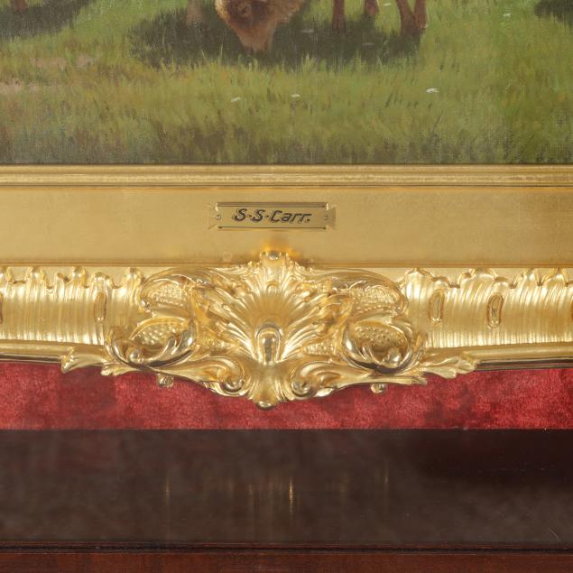 Carr’s work reflects the popular tastes of the late 19th century. His pastoral scenes often feature cattle, sheep, or goats set within tranquil landscapes that suggest different times of day or seasons. He shared a studio with painter Clinton Loveridge, and the two artists supported themselves through the production of these peaceful rural scenes.