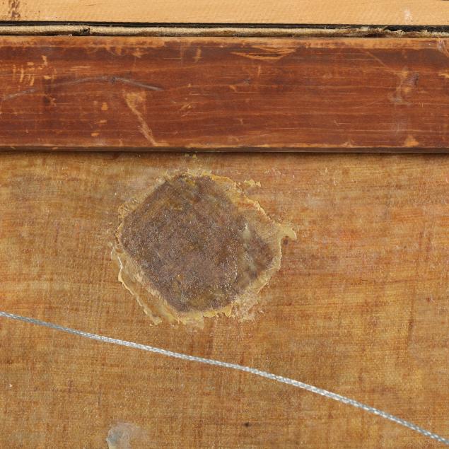 Slight waviness to the canvas, a few repaired holes to the verso with associated retouching.